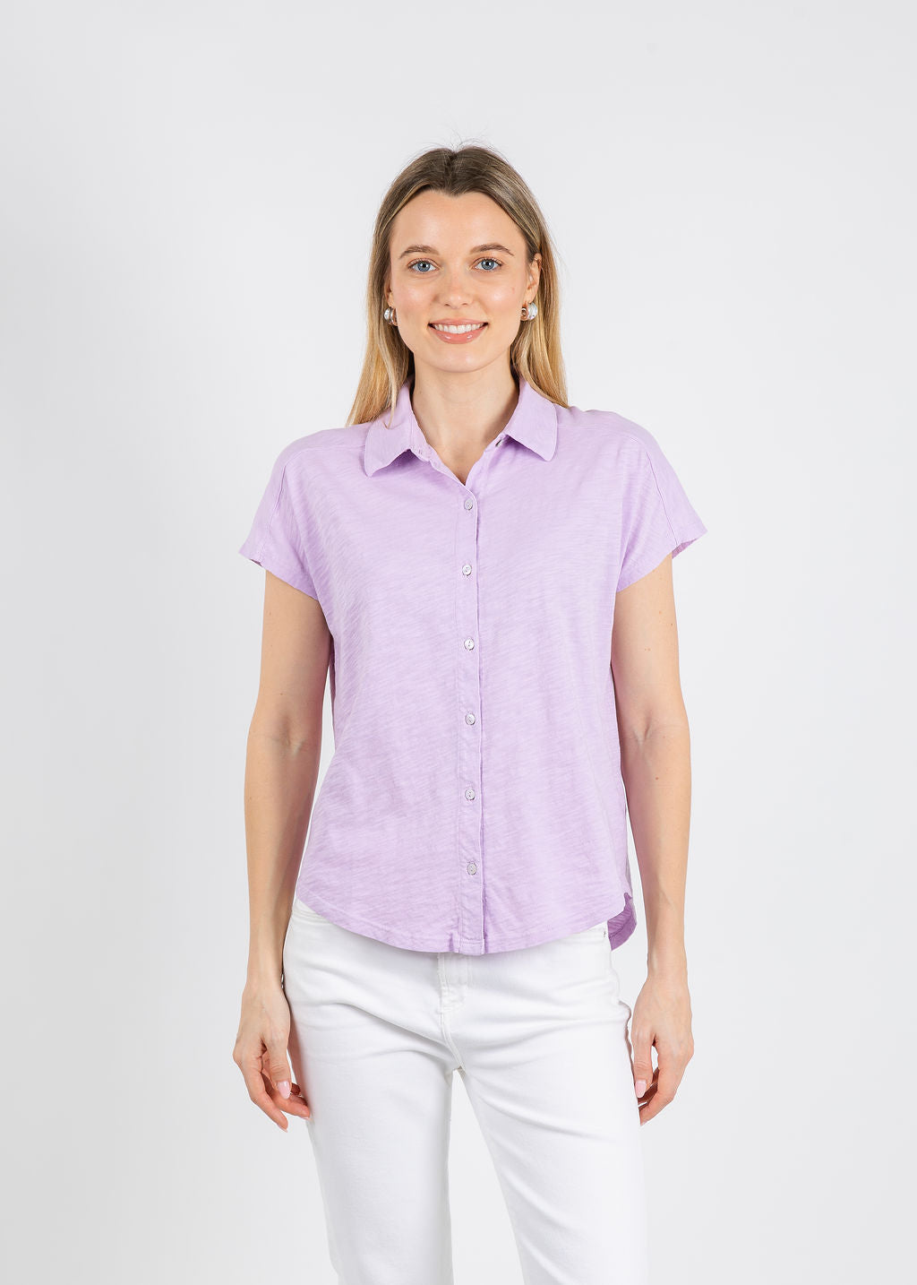 Bella Button Front Tee - Lavender
