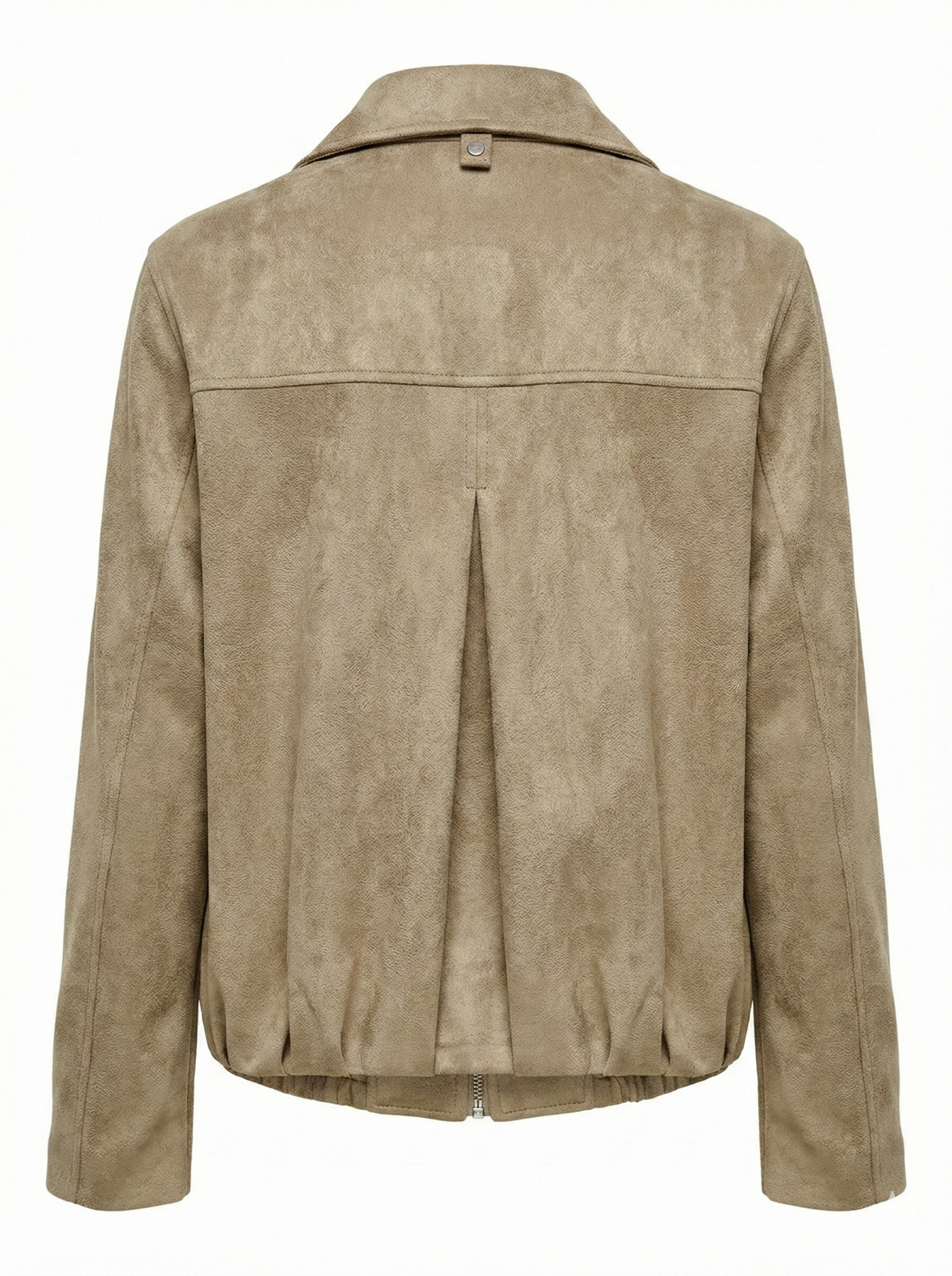 Adroit Atelier's Cassidy Faux Suede Jacket combines contemporary style with functional design. This bomber-inspired piece features a zip front closure with covered placket, shoulder tabs, and slant welt pockets for everyday practicality. Inverted back pleats and sleeve opening pleats add sophisticated movement and dimension. Crafted from a luxurious faux suede blend of polyester and spandex with polyester lining, it offers comfort and durability.