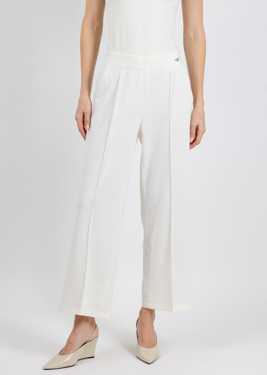 Discover effortless style with Cambio's Cameron cropped culottes, designed for modern comfort. Crafted from lightweight polyester bistretch, these pants deliver a buttery-soft feel that moves with you throughout the day. The elasticated waistband ensures a secure, comfortable fit without restriction, while the easy-care fabric makes maintenance a breeze—perfect for busy lifestyles. Featuring a subtle brand logo detail, these versatile culottes transition seamlessly from casual outings to relaxed office settings. Available in timeless off-white, they're the go-to piece your wardrobe has been waiting for.