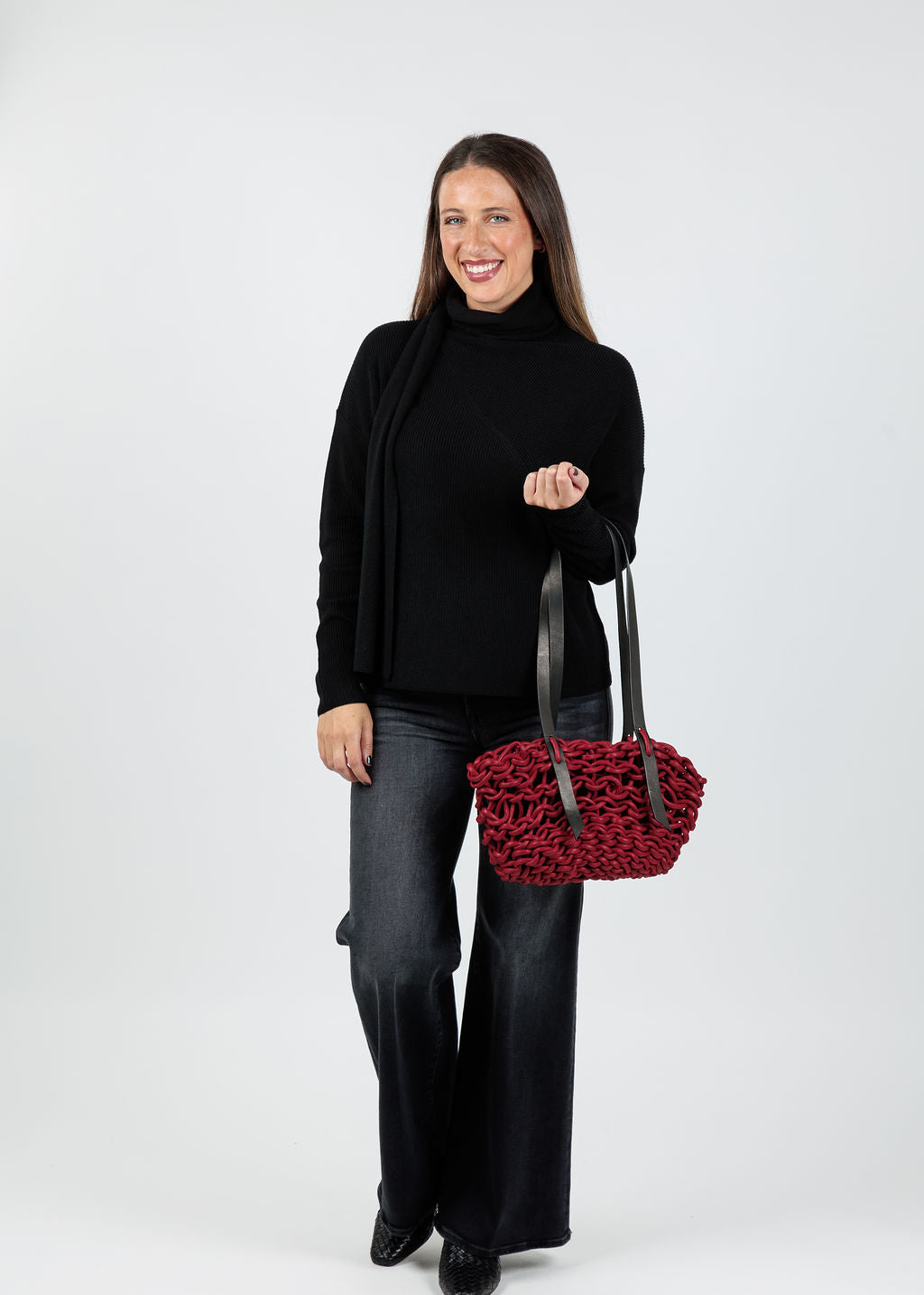 Effortlessly chic, the Wrap Scarf Sweater by Elliott Lauren combines cozy warmth with modern sophistication. Crafted in a sleek black knit, it features an attached scarf detail that drapes with ease for a refined finish. A versatile piece, it transitions seamlessly from weekday polish to weekend comfort. Pair with leather pants or tailored trousers for a polished yet relaxed ensemble.
