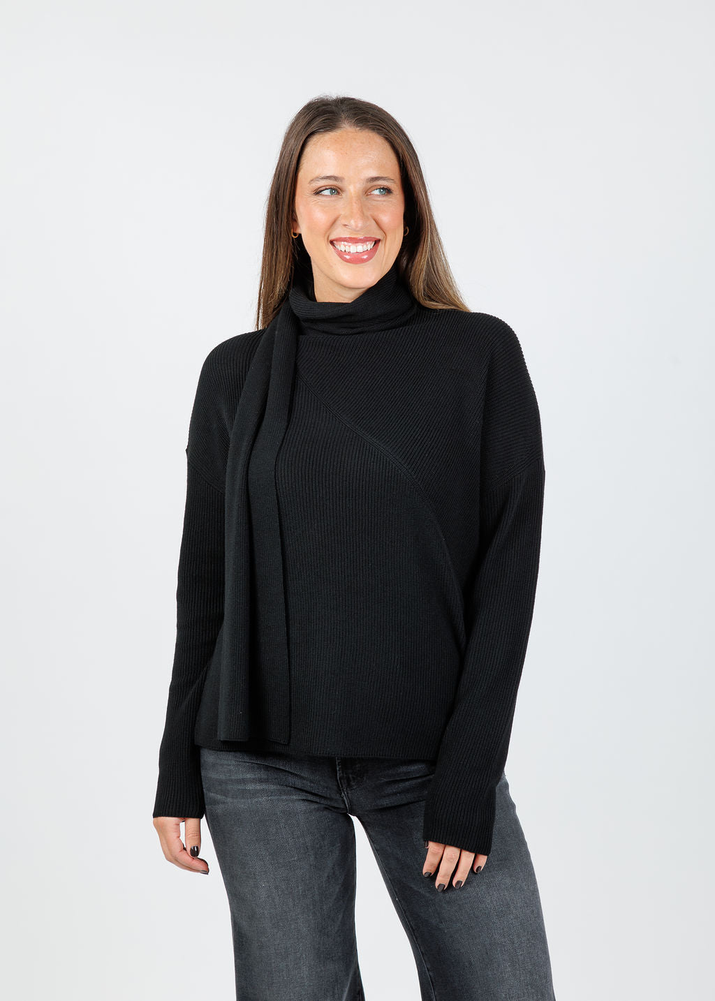 Elliott Lauren Wrap Scarf Sweater in Black available at Barbara Katz