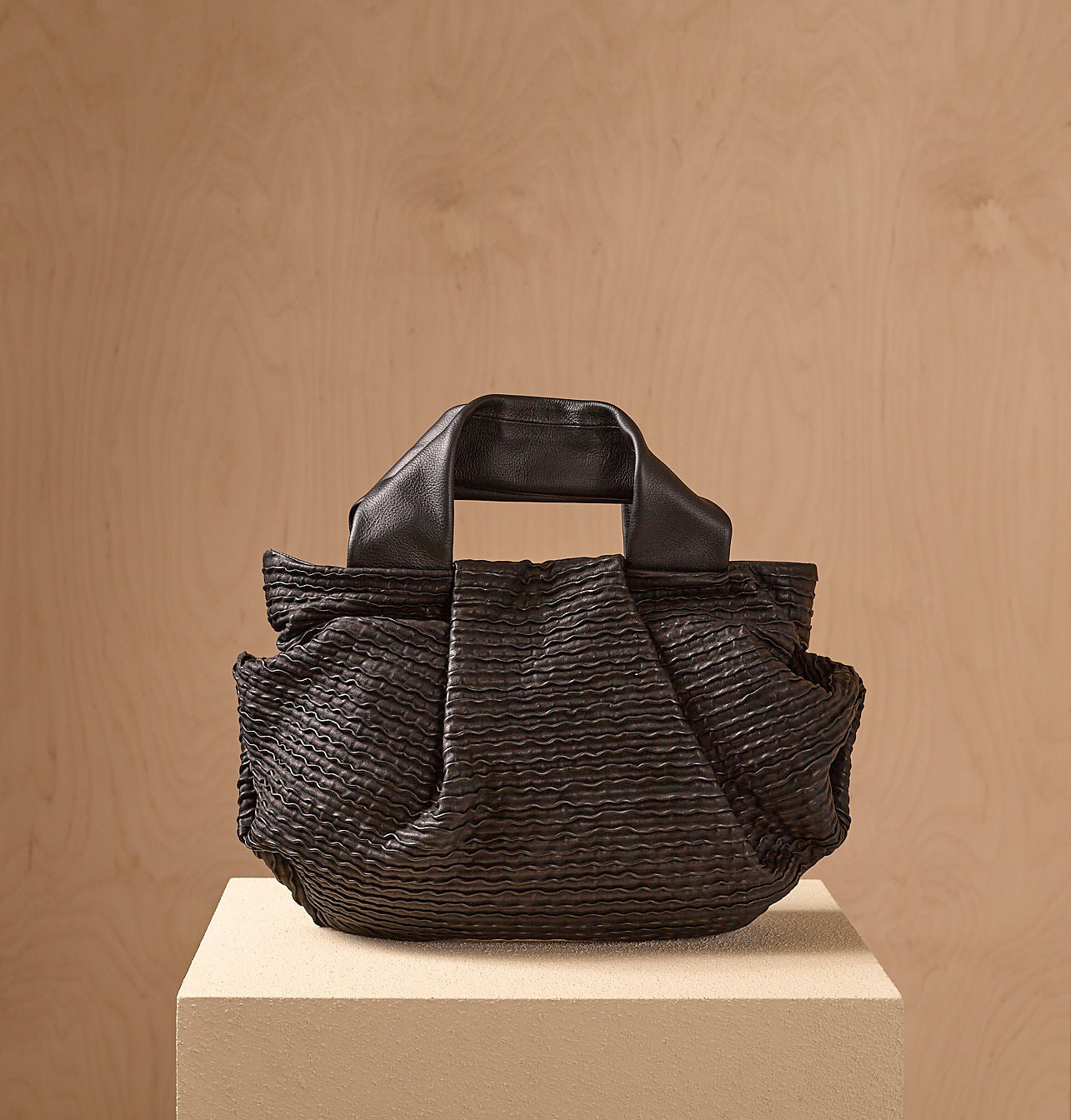 Effortlessly enhance your style with the Daniella Lehavi Bali Satchel in Wavy Black. Its expertly crafted folds create a unique wave effect that will capture attention everywhere you go. Not only is it a visually stunning accessory, but it also offers thoughtful organization and versatility with its adjustable shoulder strap and soft leather handle. Stay chic and organized with this leather bag!