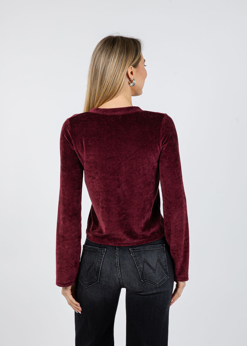 Indulge in understated elegance with this luxurious Goldie Velour Crush Cardigan, designed to elevate your everyday moments. The sumptuous fabric drapes beautifully against your skin, while romantic bell sleeves add a touch of refined femininity. A perfectly tailored silhouette flatters your frame, creating a polished, put-together look that transitions effortlessly from day to evening. Plus, the rich Bordeaux hue exudes timeless sophistication, making this piece an essential addition to any discerning wardrobe. Slip into opulence and let this cardigan become your go-to layer for those days when you want to feel absolutely radiant.