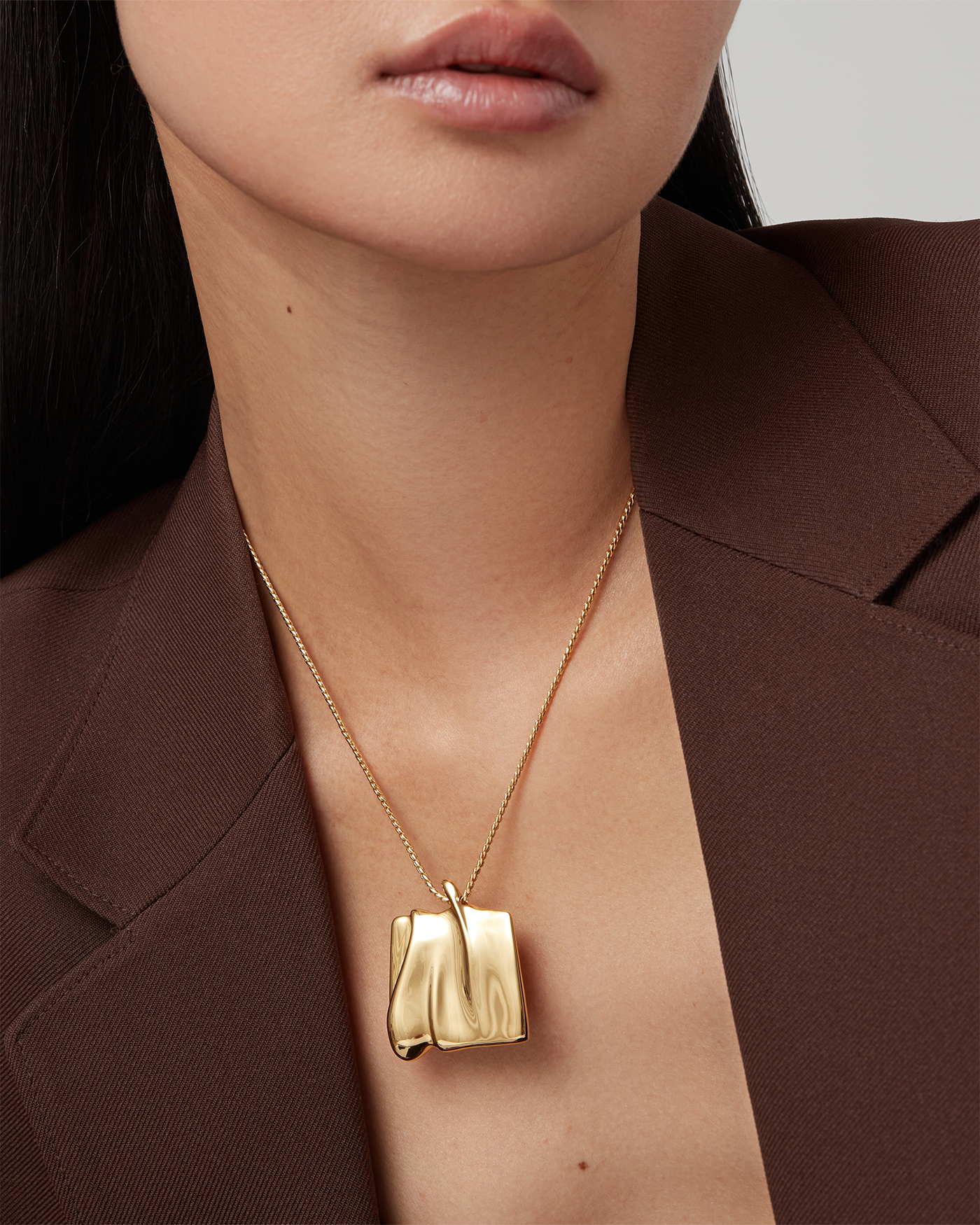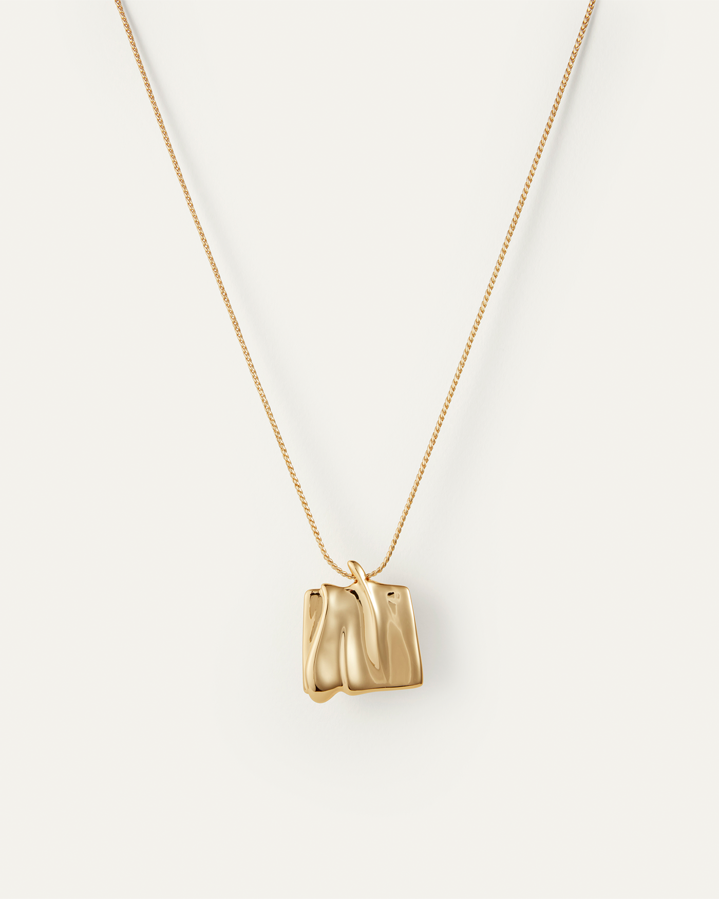 Mirroring a sand dune shaped by natural winds, this large organic square pendant glides along a gold chain. This design includes a shortening ring, making it easy to adjust and wear at 18" or 20". Finished in high-polish 14k gold.