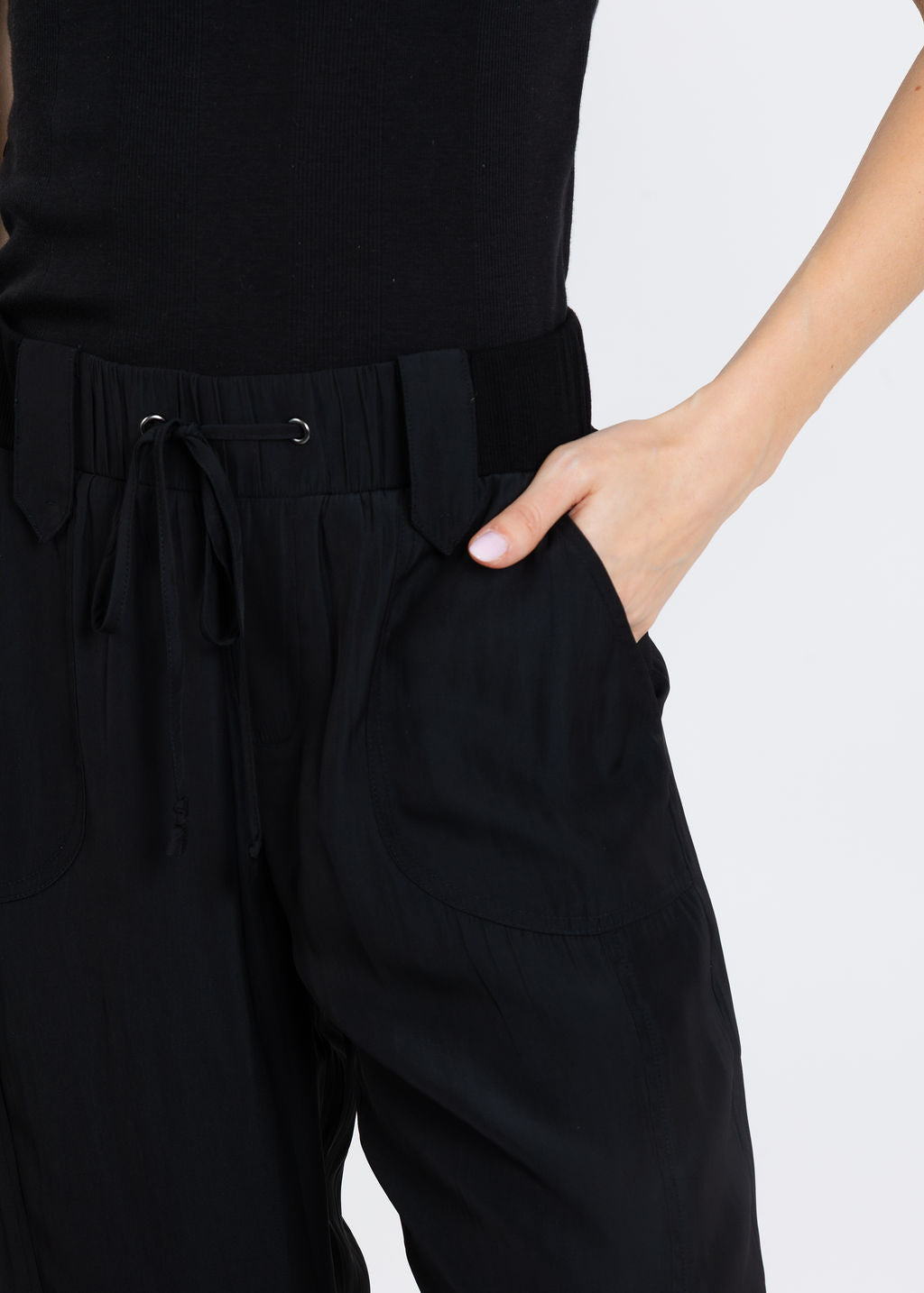 - Elastic waistband with drawstring tie