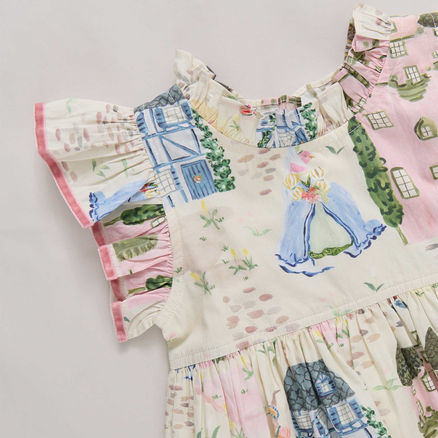 Let your little girl step into a fairy tale with Pink Chicken's enchanting Girls Jennifer Dress in Whimsical Castle. Delicate illustrated castles and whimsical characters dance across the fabric, while romantic ruffles and sumptuous pink velvet trim create an irresistibly magical aesthetic. Perfect for spring adventures and special occasions, this exclusive piece transforms everyday moments into storybook memories. Match with the Baby Girls Jennifer Dress Set for a complete magical storybook charm.