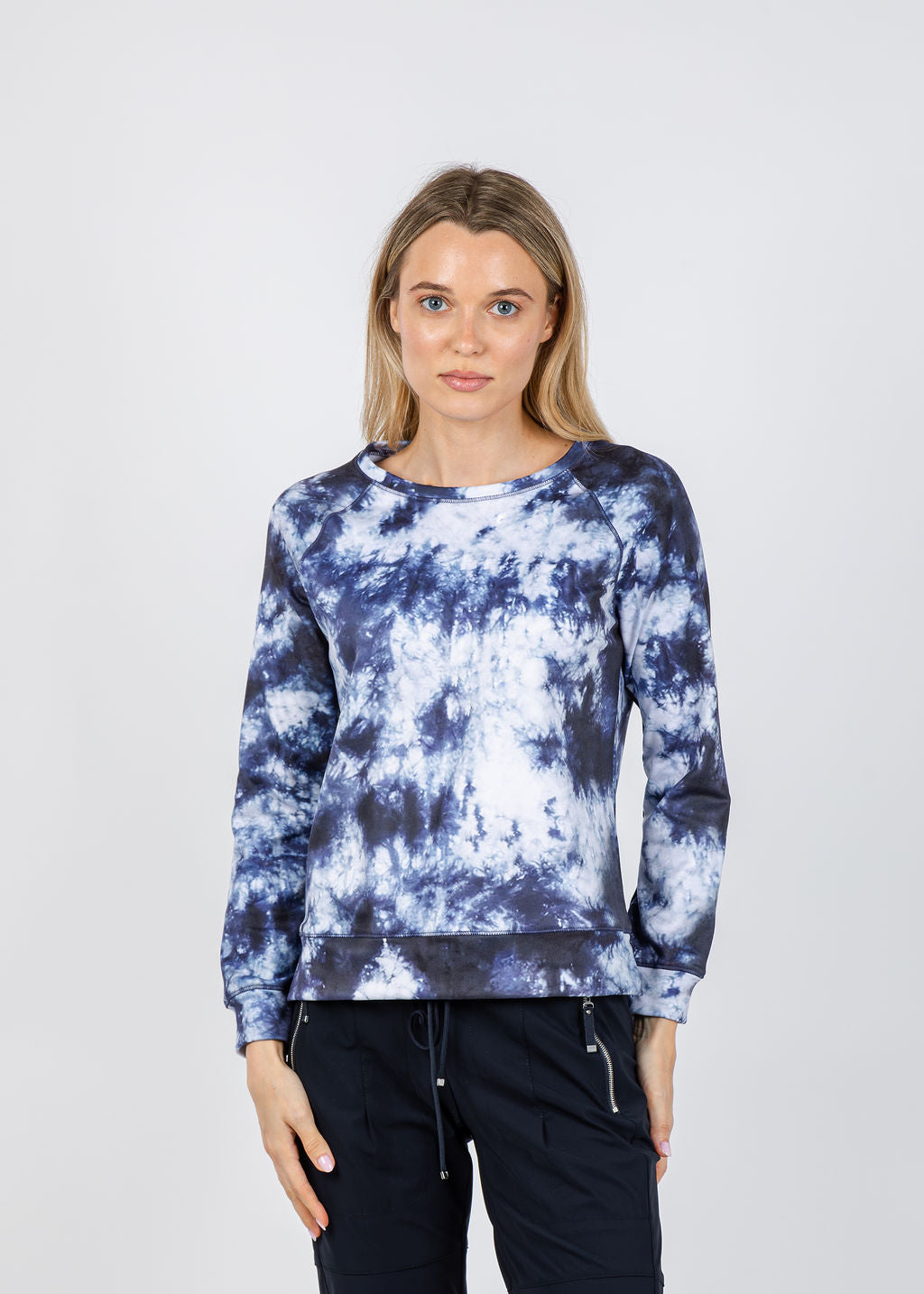 - Soft tie-dye print in moonlit blues