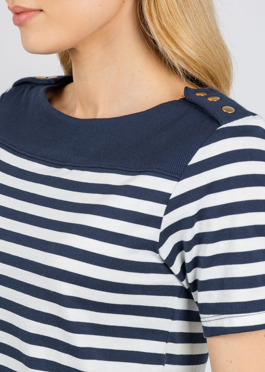 Embrace understated elegance with Nation's Johnnie Tee, the foundational piece every wardrobe deserves. Crafted from premium 100% pima cotton, this top combines luxurious softness with exceptional durability that withstands time. Its refined boat neckline and delicate gold hardware add a touch of sophistication that effortlessly carries you from casual days to evening occasions. Designed with the brand's signature fit for a flattering, comfortable silhouette, this versatile tee becomes the go-to essential you'll continuously turn to for reliable, timeless style.