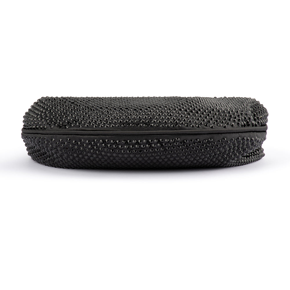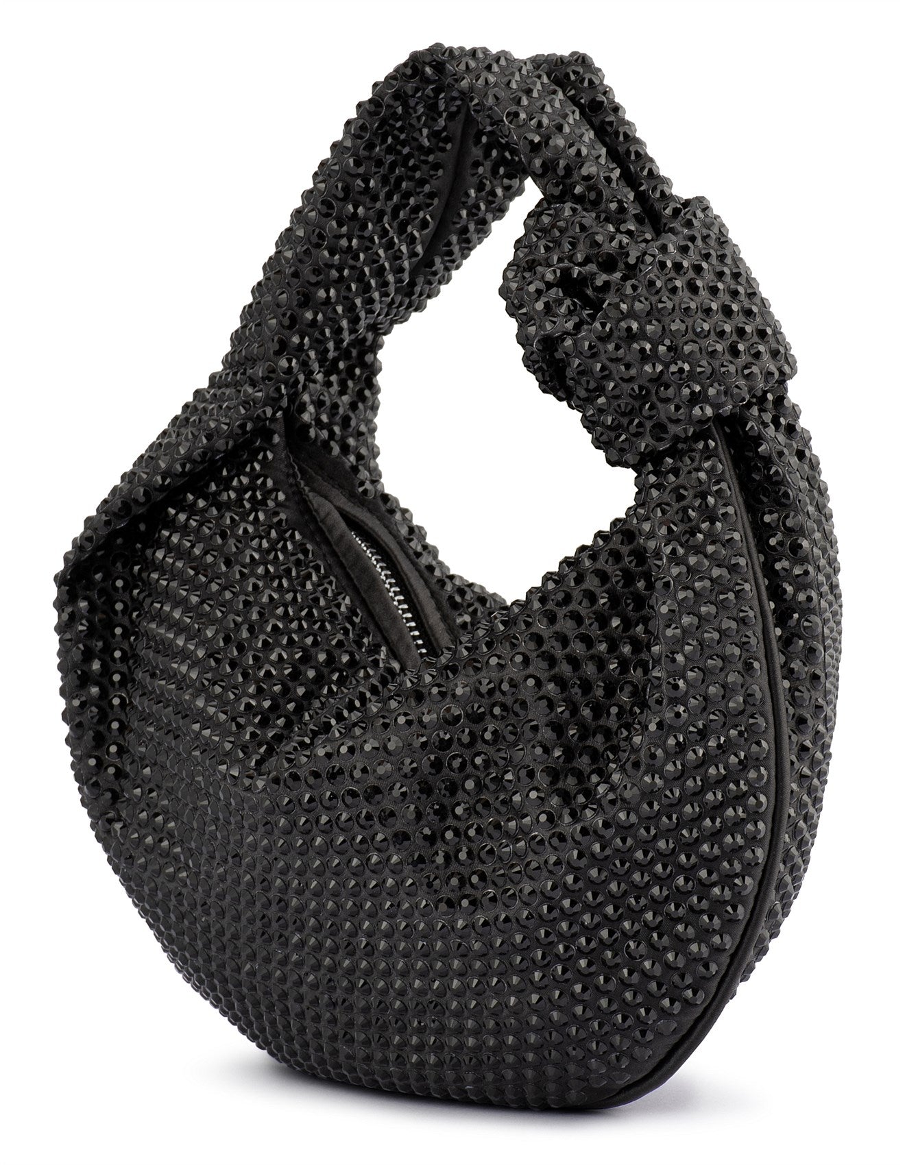 Transform any occasion into a statement moment with Olga Berg's Juliana Crystal Handle Bag in Black. This luxurious piece combines elegance with practicality. Its soft, spacious interior accommodates everything from your essentials to a large smartphone, while the shimmering crystal-encrusted body and artfully knotted handles deliver undeniable sophistication. Perfect for events where you refuse to compromise on style or function, this is the bag that elevates your look effortlessly.