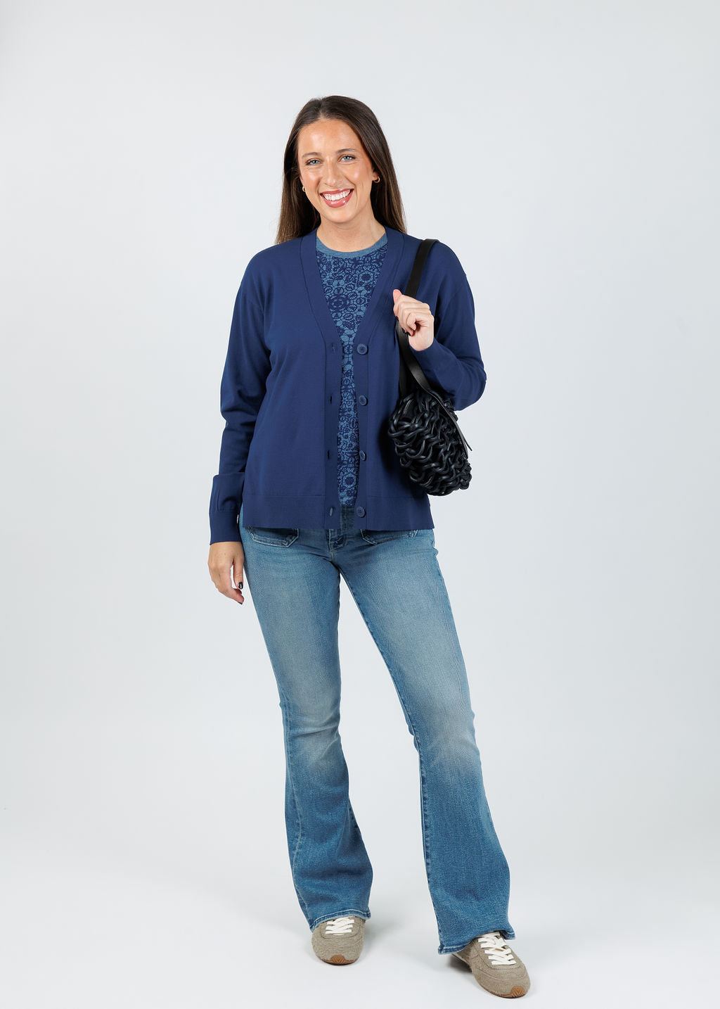 Faryn is 5'6" tall with a 34" bust, 28.5" waist, 31" hip, and 29" inseam. She typically wears a size small in tops and a size 25/26 or 2/4 in pants.