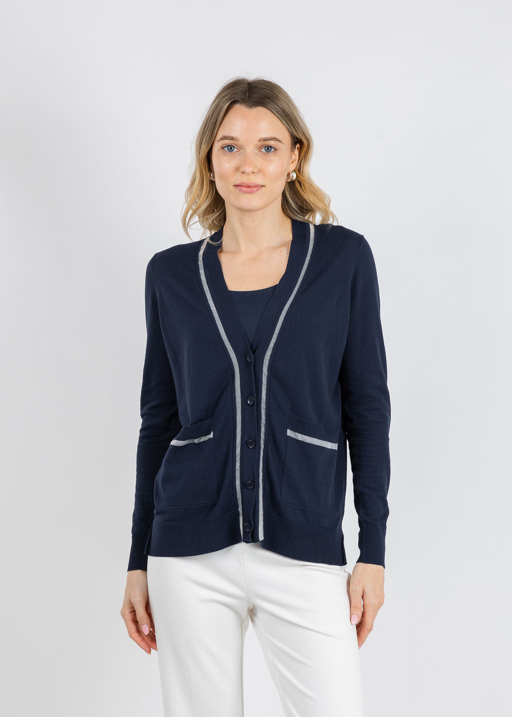 Elevate your everyday wardrobe with Peace of Cloth's Sheer Stripe Cardigan that effortlessly transitions from office to weekend. Its flattering V-neckline and button-front design offer easy layering, while practical front pockets add functionality to style. Long sleeves with ribbed cuffs provide a polished finish, and delicate sheer stripe accents introduce subtle visual interest. Plus, the ribbed hem ensures a refined silhouette that works beautifully over dresses, tees, or sweaters. Perfect for creating countless outfit combinations, this versatile cardigan is the timeless piece you'll reach for again and again.