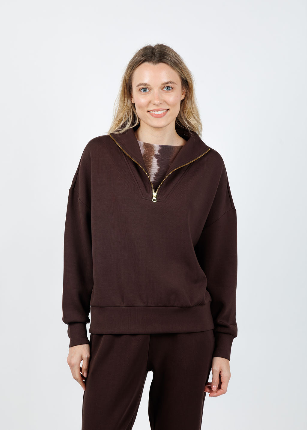 Get cozy and stylish in Varley's Coffee Bean Hawley Half-Zip Sweat! With its oversized fit, paneled half-zip neck, and deep cuffs with a snug hem band, it’s made for easy, everyday wear. Crafted from the brand's Signature DoubleSoft fabric, this sweatshirt keeps you comfy whether you’re out and about or just chilling at home.